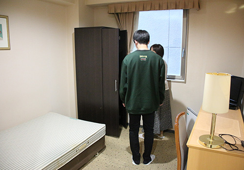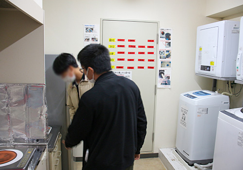 ※上記写真は以前行われた学生寮見学の様子です